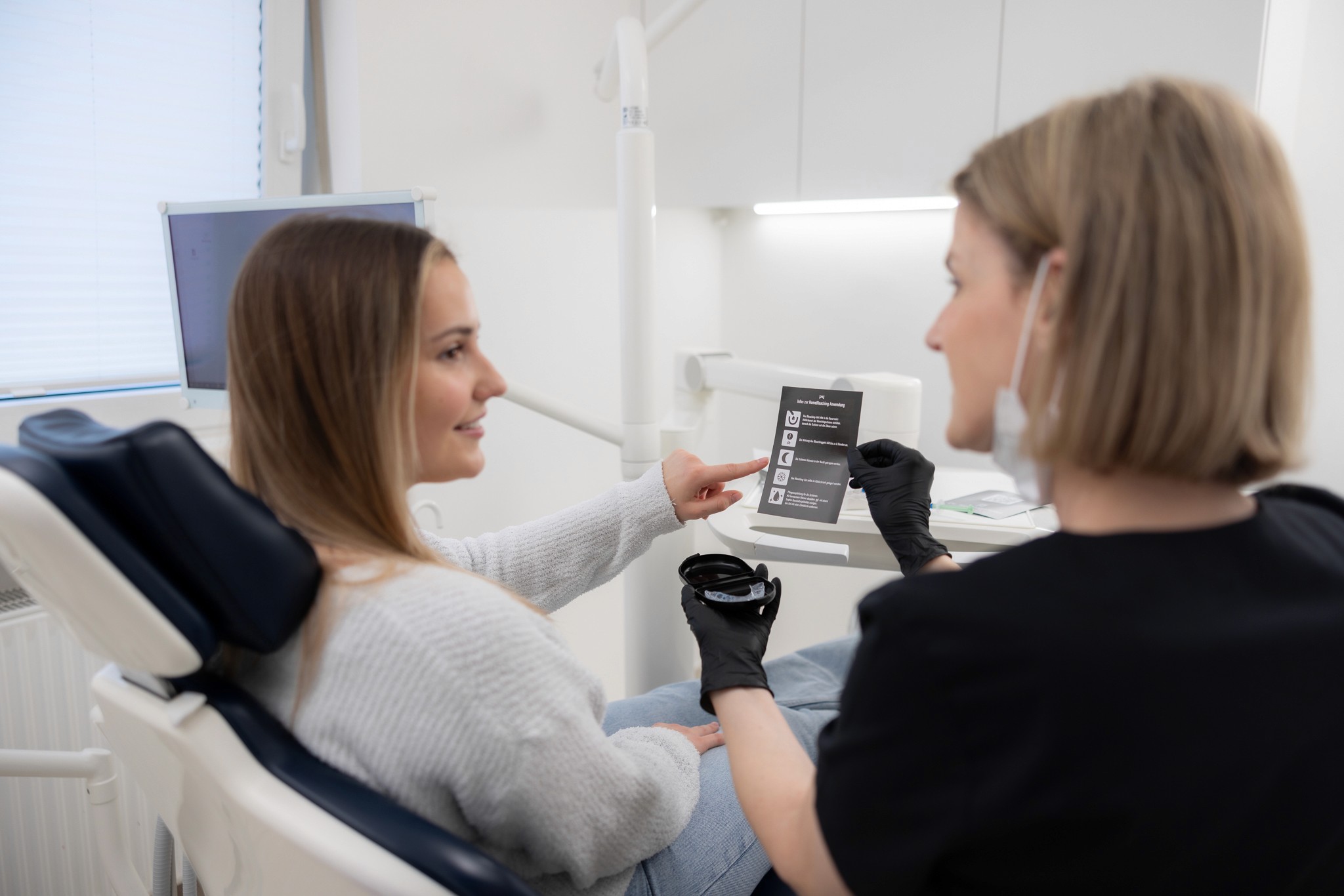 Die Behandlung ermöglicht eine Aufhellung um bis zu 8 Nuancen. Das Ergebnis ist sofort sichtbar und bietet eine langanhaltende Wirkung. Die Behandlung wird stets individuell auf Ihre Zahnsituation abgestimmt.