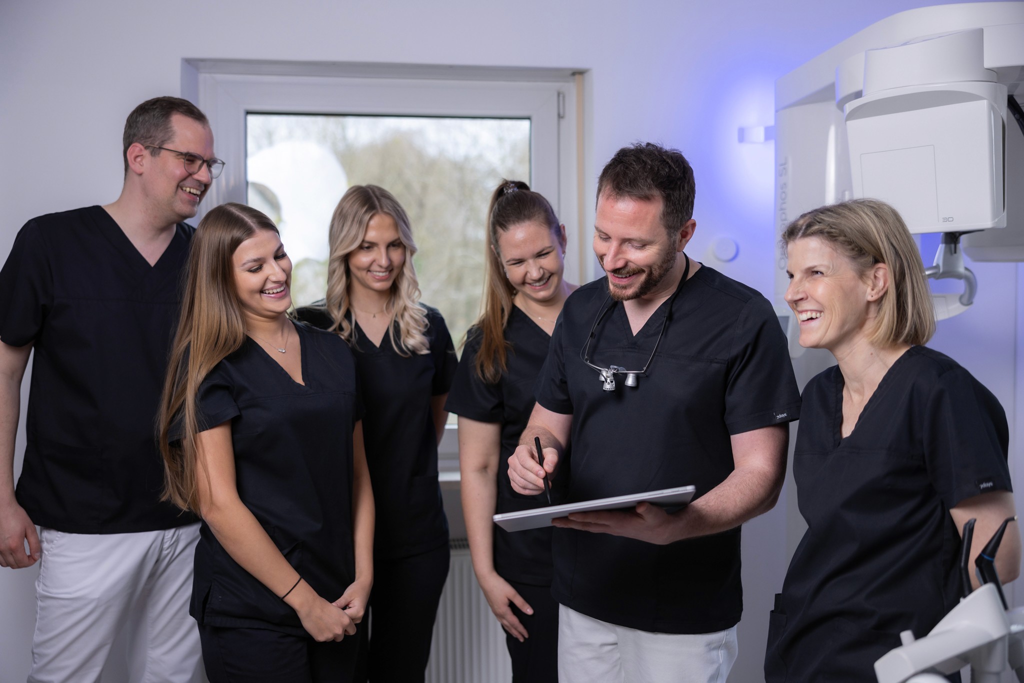 In unserer Praxis stehen Sie als Mensch im Mittelpunkt. Wir nehmen uns Zeit für Ihre Fragen, erklären jeden Schritt verständlich und planen Behandlungen, die zu Ihrer individuellen Situation passen. Mit viel Ruhe, Empathie und Erfahrung – insbesondere im Umgang mit Angstpatienten – schaffen wir eine Atmosphäre, in der Sie sich sicher und gut aufgehoben fühlen.